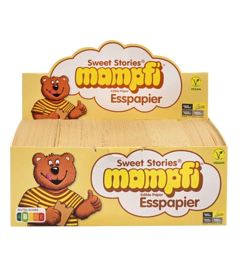 Esspapier Mampfi mit Karamellgeschmack 200 Stück im Display – Sweet Stories® – vegan
